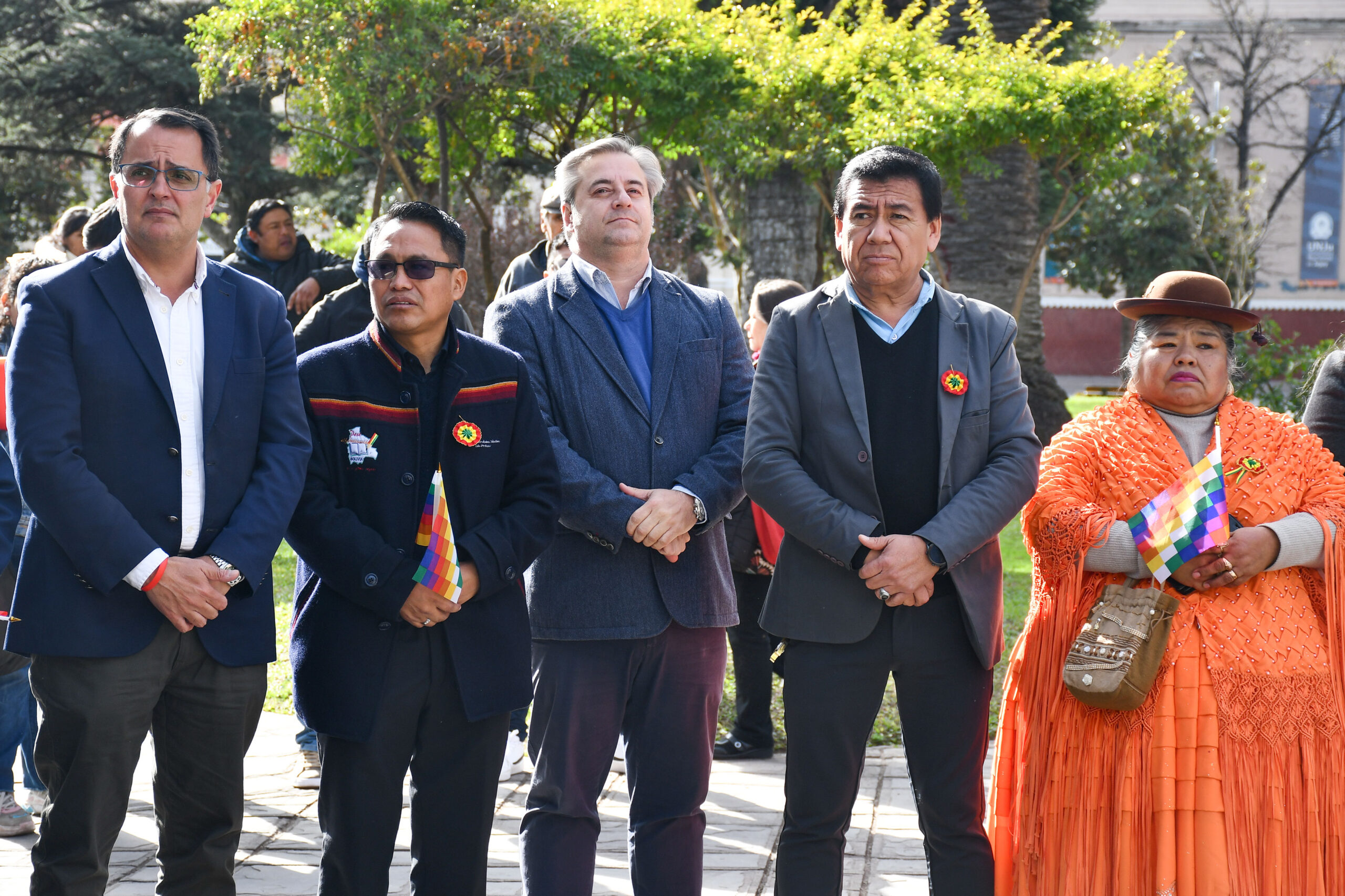 Acompañaron al presidente de la institución parlamentaria, los concejales: Gastón Millón, Néstor Barrios, María Galán, Leandro Giubergia; el presidente de la Asociación Boliviana 6 de Agosto, Sanino Reynaga; el Cónsul de Bolivia, Juan Ino Mamani; el Director de Migraciones, Roque Pereyra y representantes de diferentes colectividades.